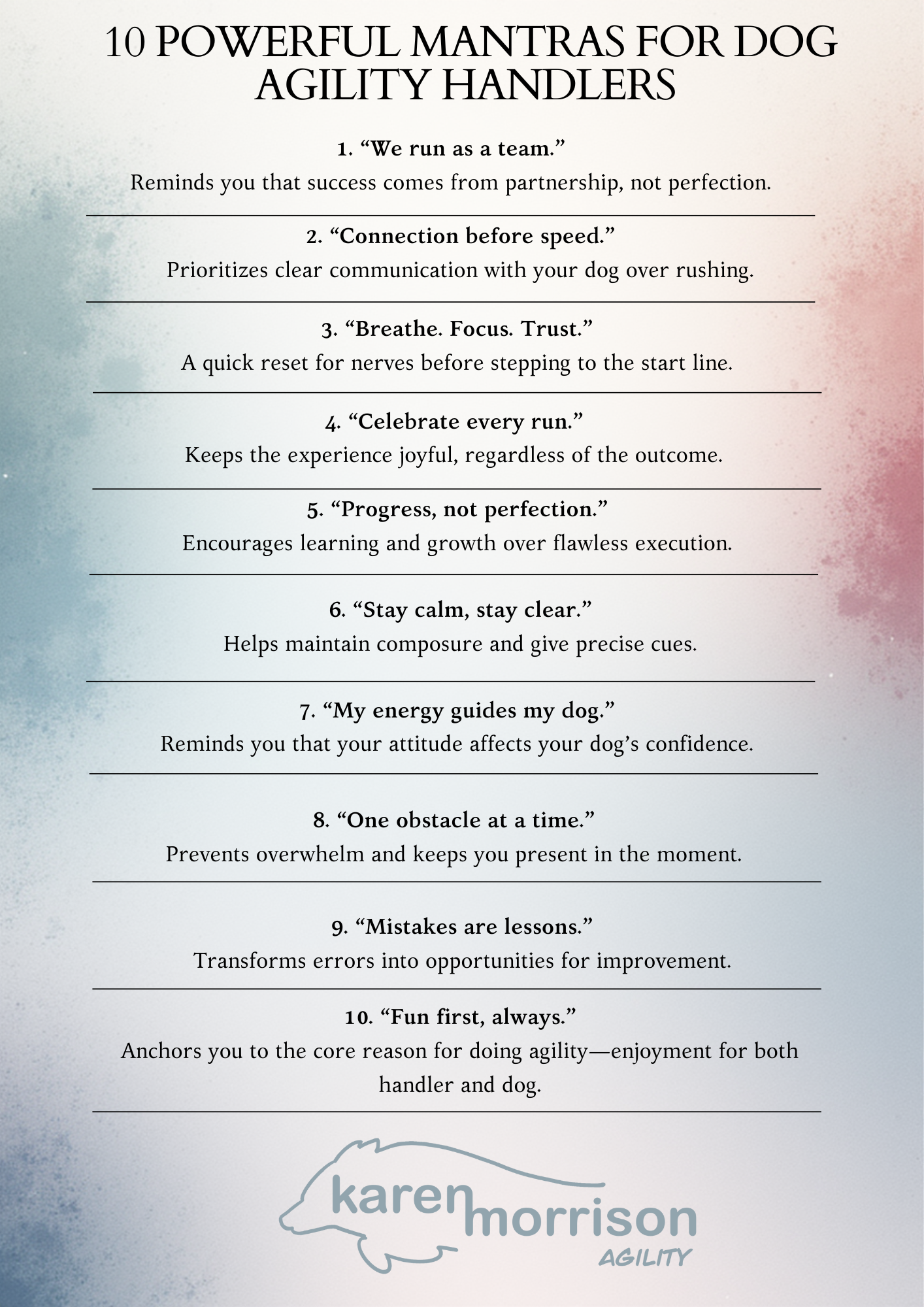 To keep our mindset strong and positive, here are 10 powerful mantras for dog agility handlers: